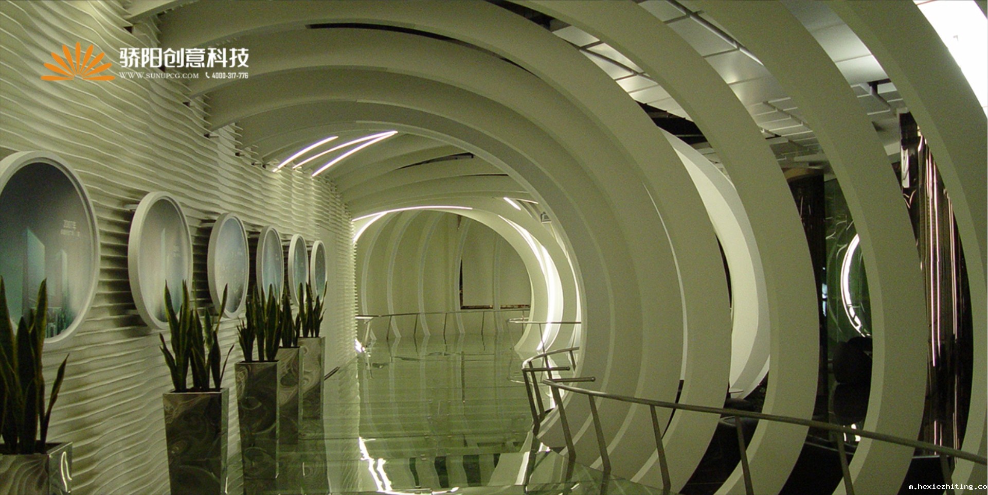 创意团队深度挖掘展示对象所蕴含的背景与文化,通过360度全息成像、互动球幕、LED时光走廊、AR立体互动、三通道多点触摸屏、六通道真人互动讲解墙等优米体育入口官网下载安装最新版,为卓越集团创造了一个科技时尚充满科幻色彩的展厅