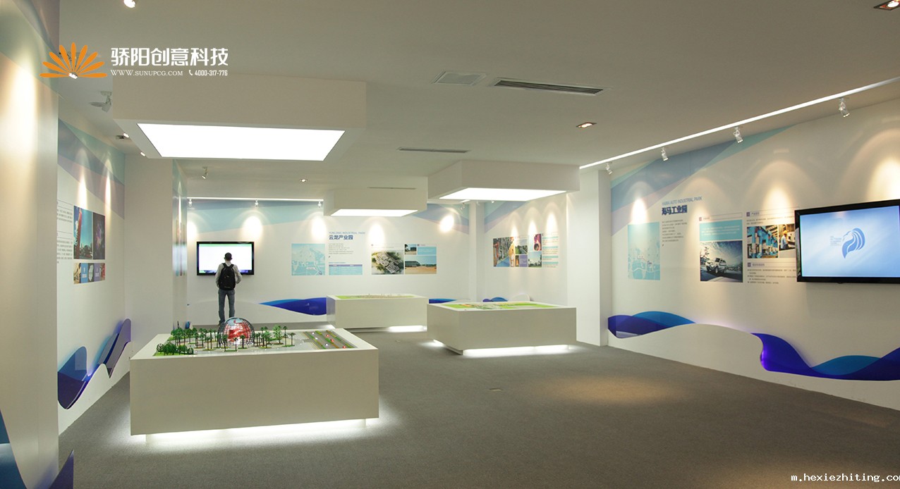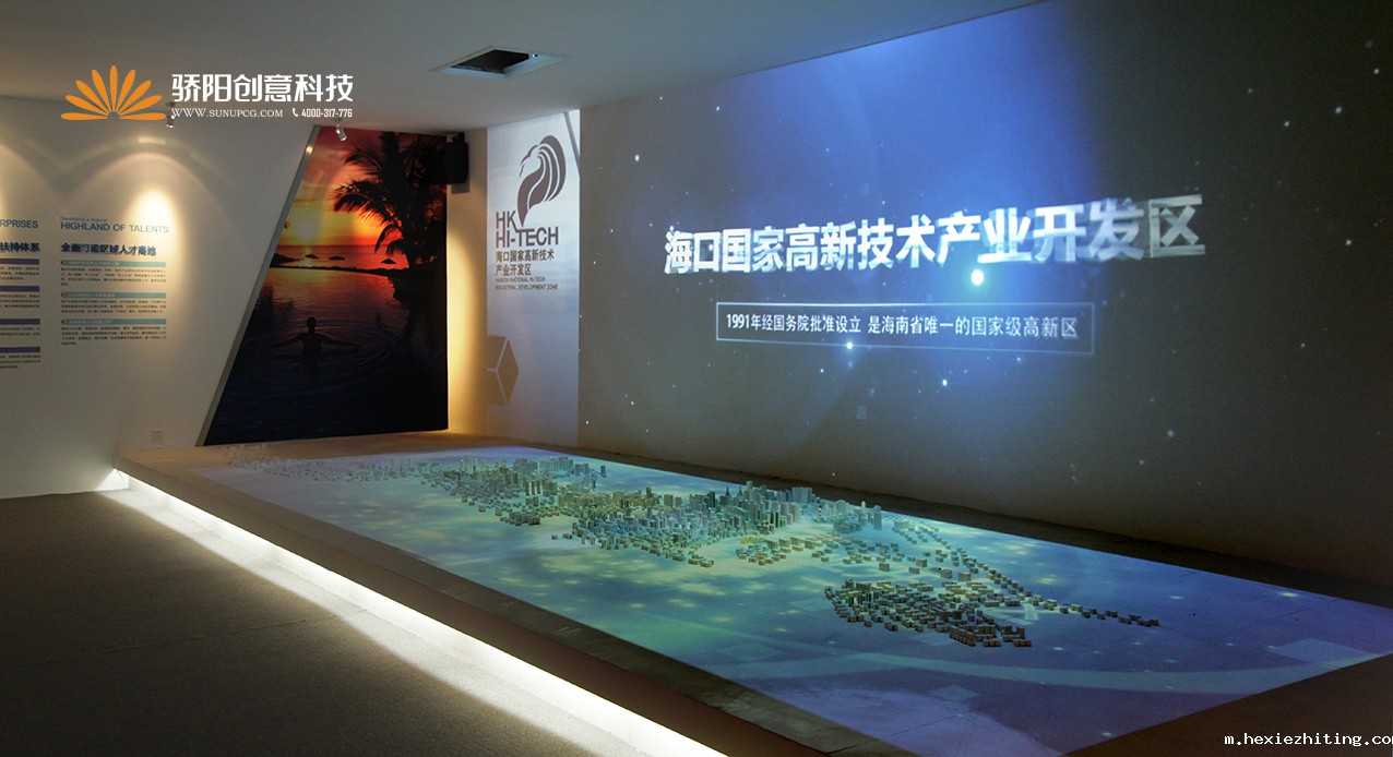 三亚市创意新城展馆项目历经半年的精心策划,创意和深入设计,呈现。展馆主要设有海南新视线形象厅、蔚蓝中国海洋厅、亲临未来指导厅、三亚新城沙盘厅、南海关怀厅、创意高地“梦之船”4D影厅、高新视窗企业厅、创意沙龙休息厅。在这个海洋梦幻化的科技馆中,幻影成像、多点触控、大型地幕、四维探秘,360度全息球幕等互动项目,给每位参观者留下很深的印象。