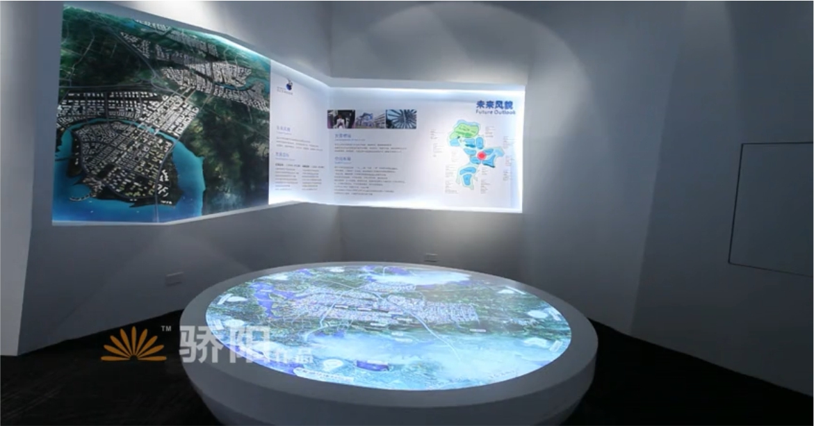 为全面展示项目优势,我们在同一展区置放内嵌式一体机和高清图文展板,通过将动态画面与静态图文相结合,丰富展示内容,并通过将项目现状与未来可能的更新在一体机做后期融合,增加展项的效用价值。
