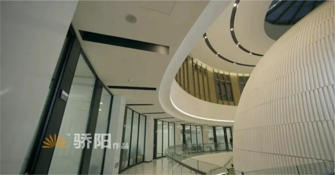 展厅内大量使用圆形装饰元素,通过圆的交错、层续,使参观者在远处目光即被吸引,空间景象灵动,视觉充满张力,空间整体拥有更多想像外延。