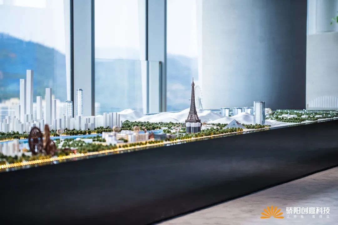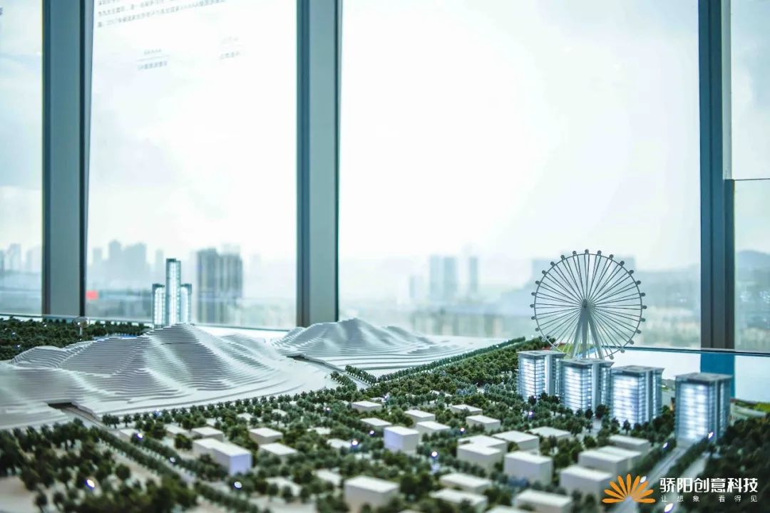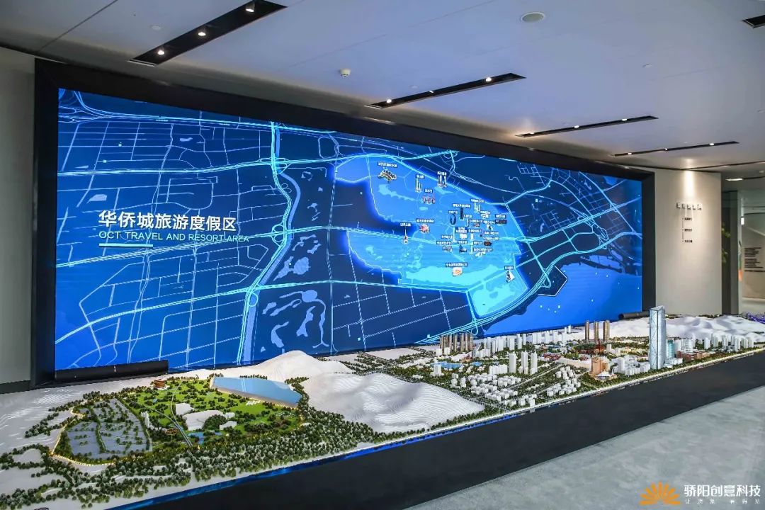 在深南大道边上这个30楼的玻璃盒子中,我们复刻出一条深南大道,呈现华侨城的深圳作品版图。整个沙盘以总部片区为展示核心,向外延展及深圳区域。模型选取特色形象进行放大,形成独特的昭示性。