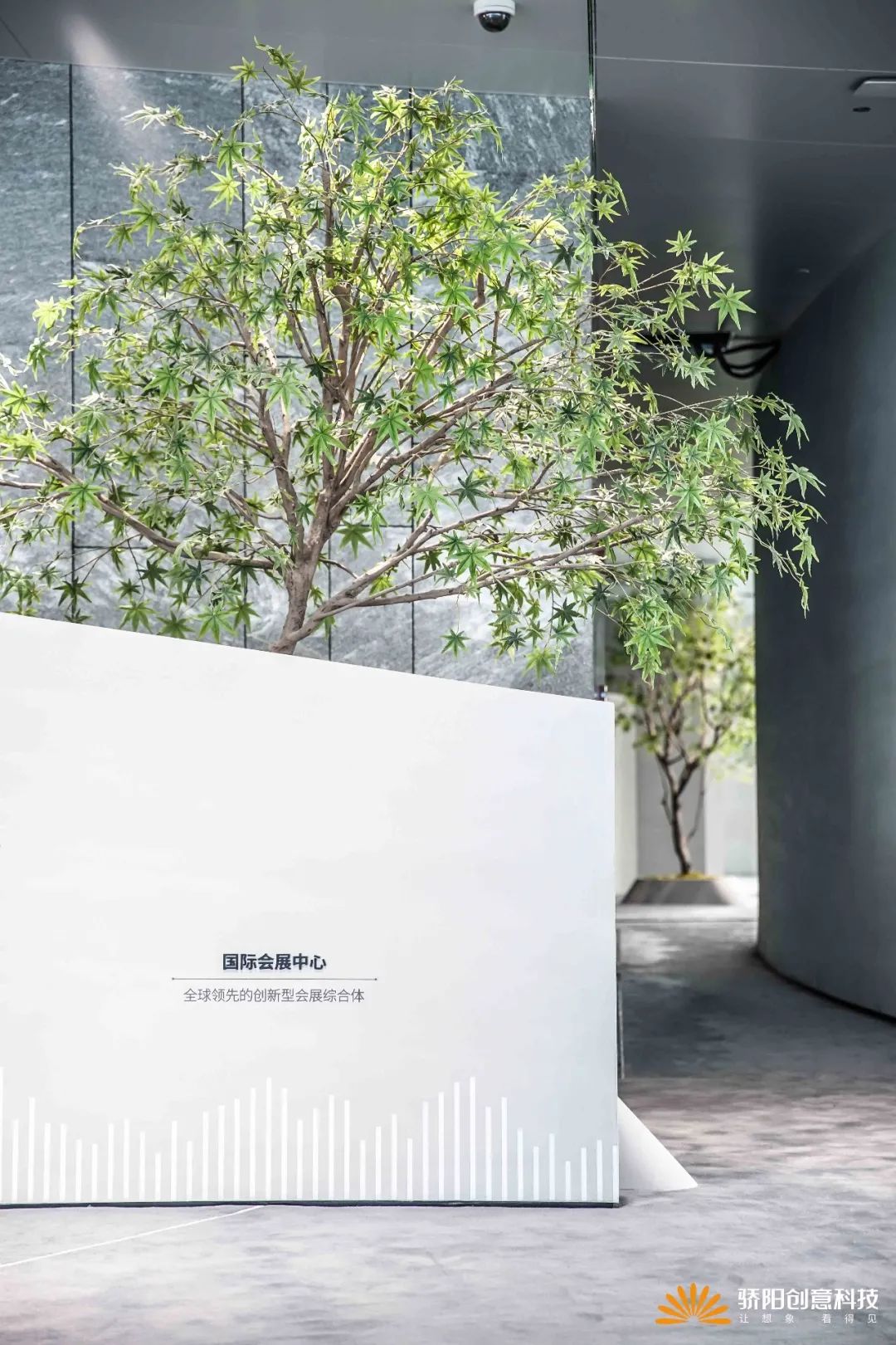 在展区中,为传承展馆的山河理念,我们会通过两面弧墙夹道,呈现出山河的流动感;