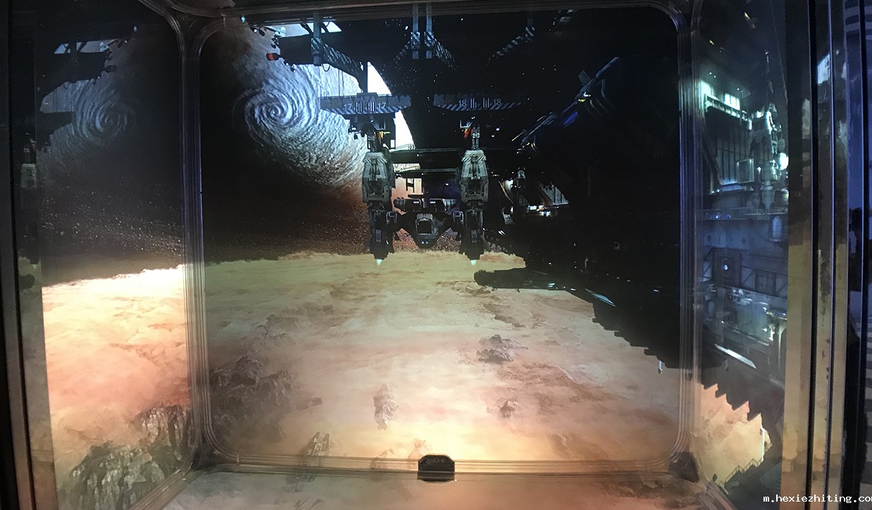 3D全景沉浸式画面,置身电梯中,仿佛瞬间进入了时空隧道,按下楼层后,“电梯飞船”快速冲破“天际”,向“外太空”飞升,55秒后抵达“空间站”,逼真情境体验,让人震撼!