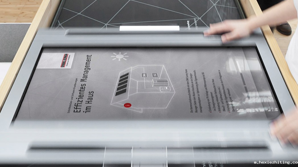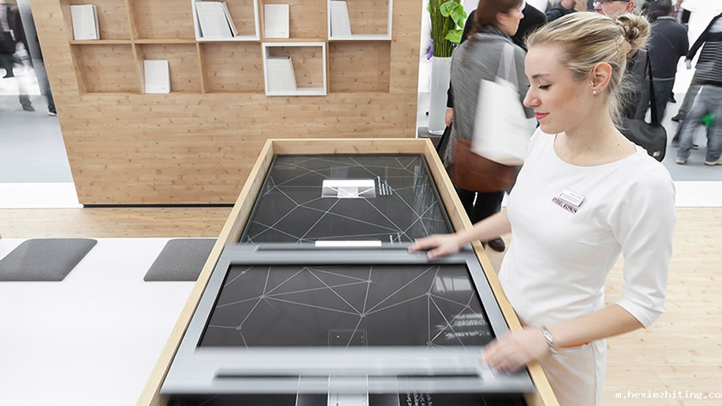 通过特殊设计的机械滑轨控制装置,实现对屏幕内容的互动,滑轨不同位置展示不同信息,是一种全新的互动展示形式。滑轨长度根据屏幕尺寸定制,控制识别系统反应灵敏,实现了和传统触摸屏不一样的互动展示形式。