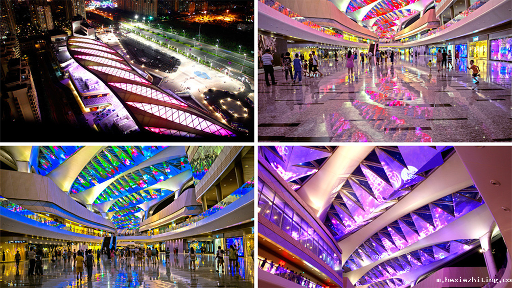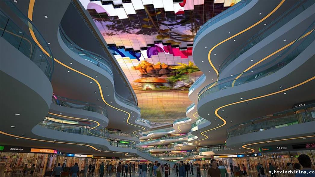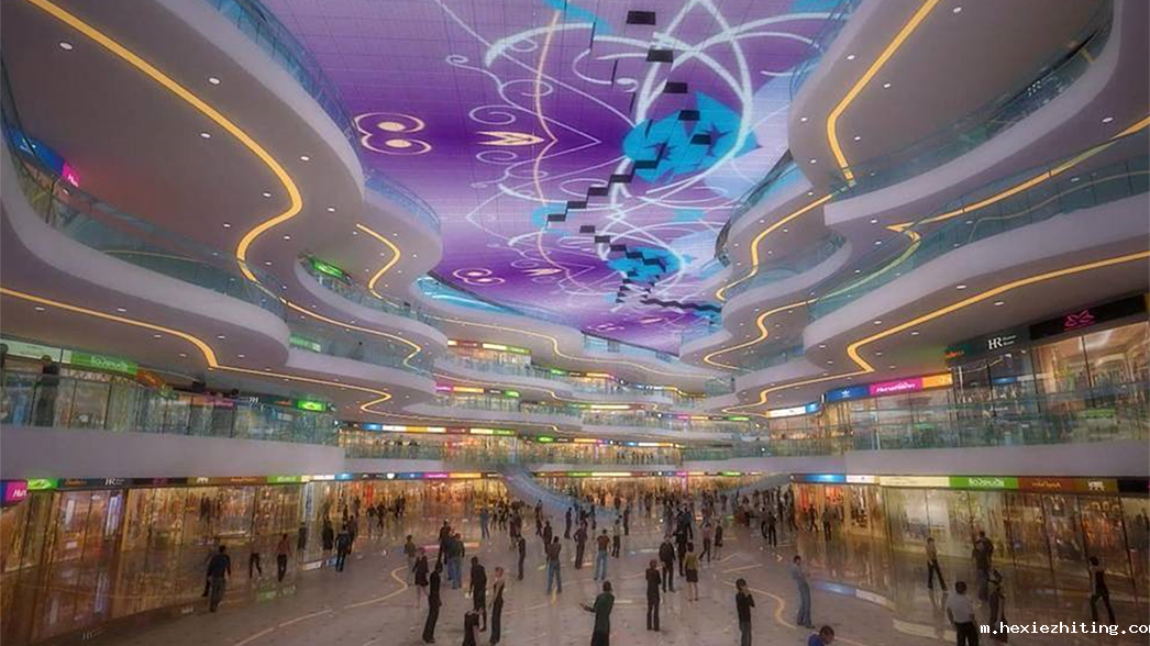 天幕大多用于大型购物商场,依托空中回廊而建,展现出大屏幕与建筑的融合之美,光与影的交错,声与乐的萦绕,让身在其中的人们尽享购物、游玩之乐。